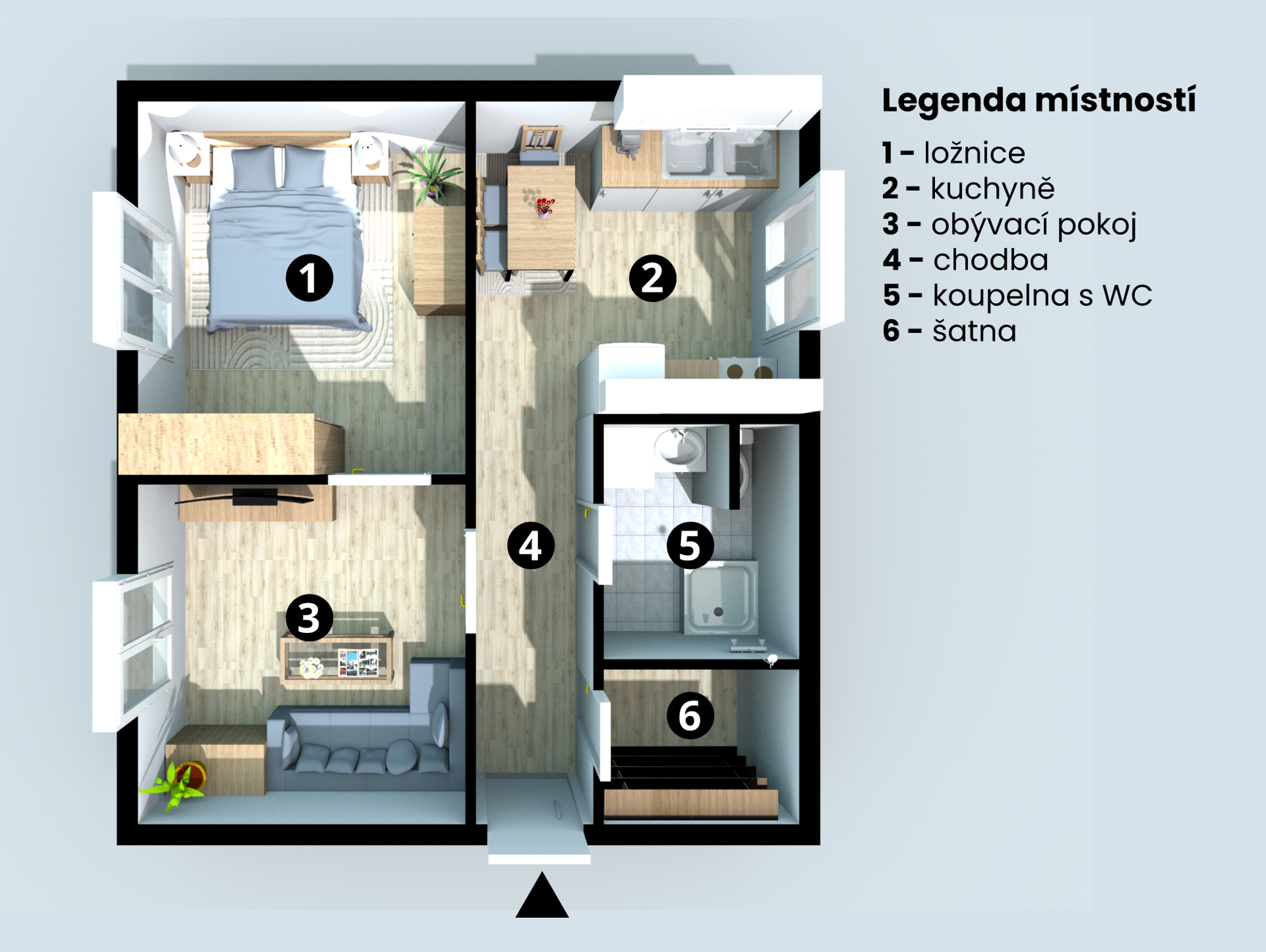 K bytu náleží sklep (3 m²) a sklepní kóje (6 m²).