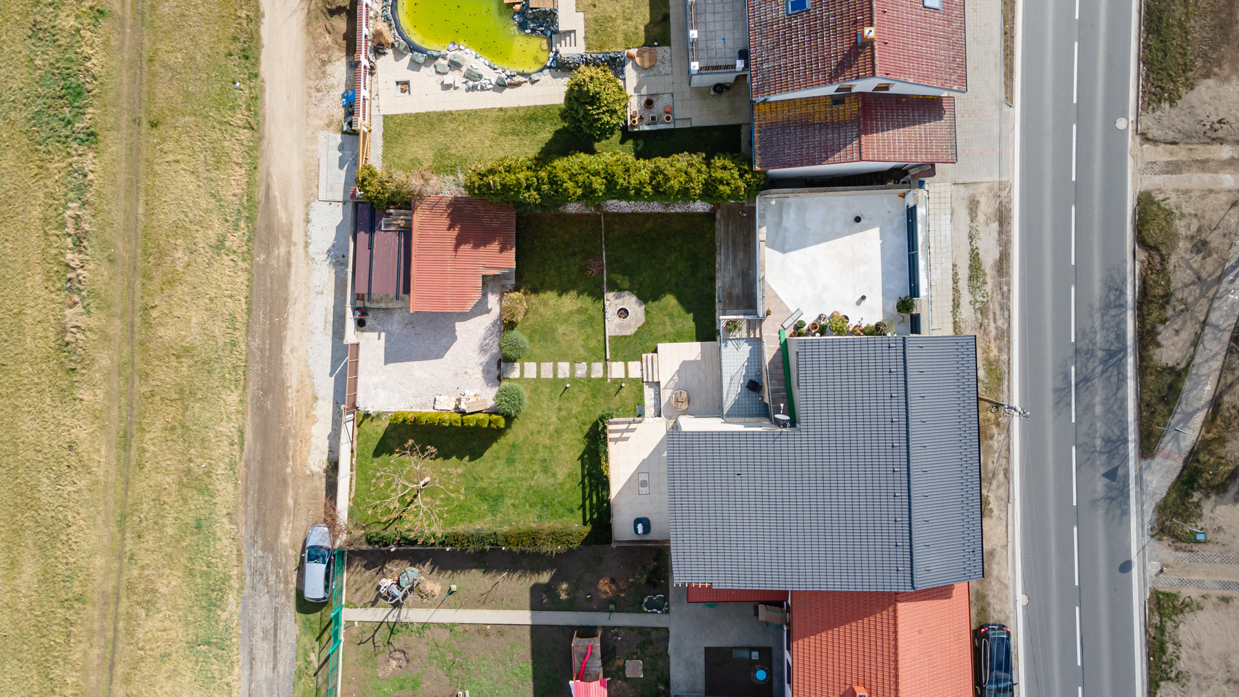 Nemovitost o celkové podlahové ploše 400 m² se rozkládá na pozemku o výměře 700 m², z toho 462 m² tvoří zahrada s plně automatickým zavlažováním, vlastní studnou a naprostým soukromím díky betonovému plotu a výsadbě tújí.