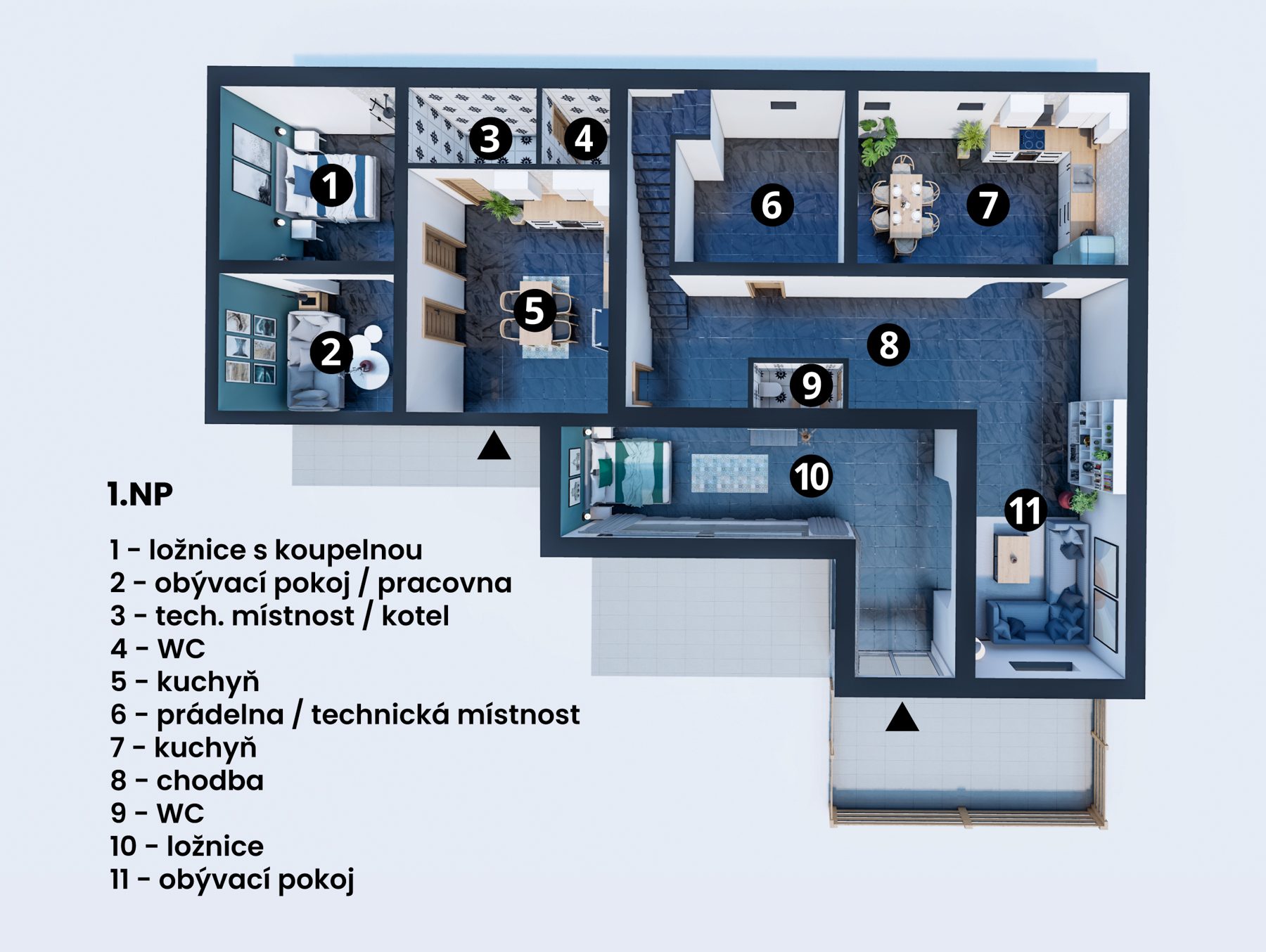 Dispozice domu – 3 nadzemní podlaží: