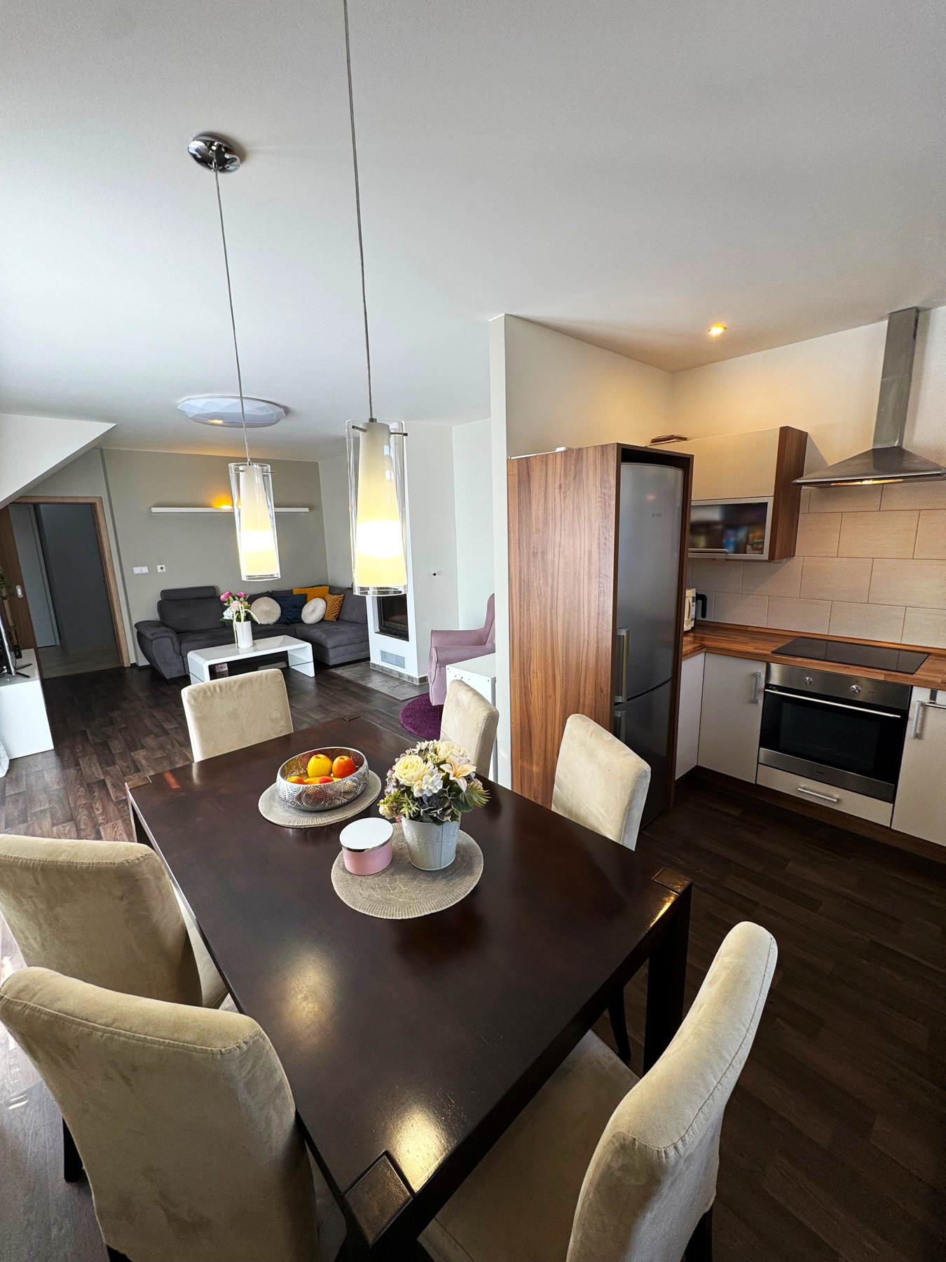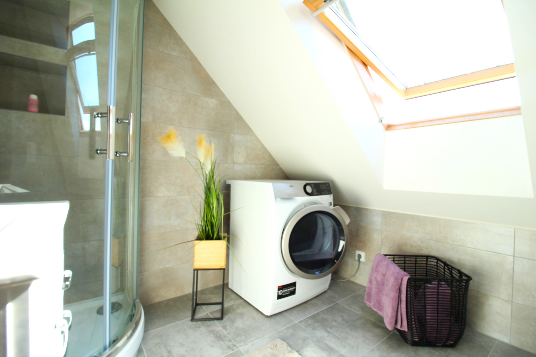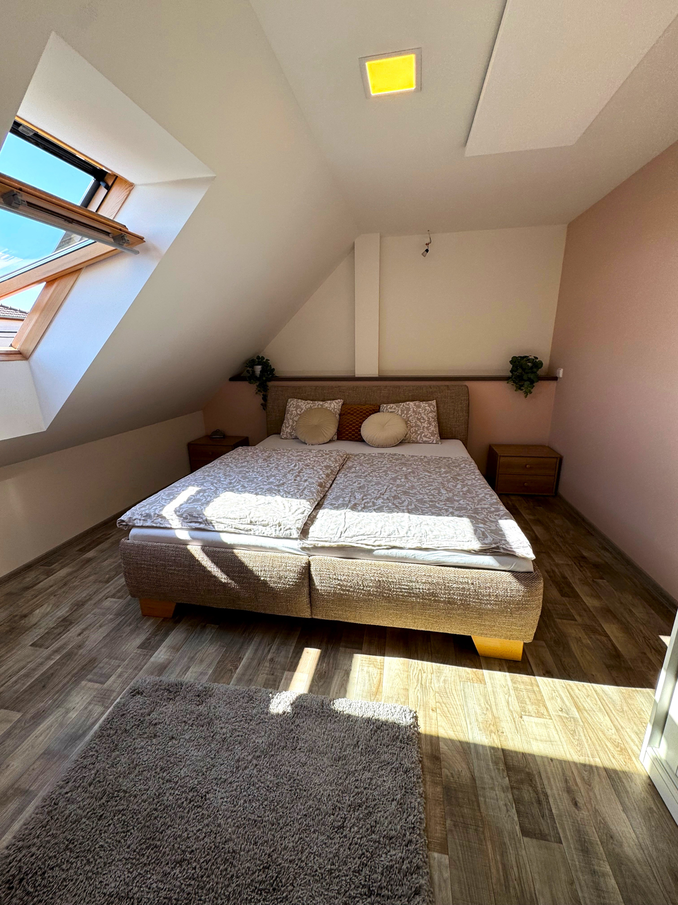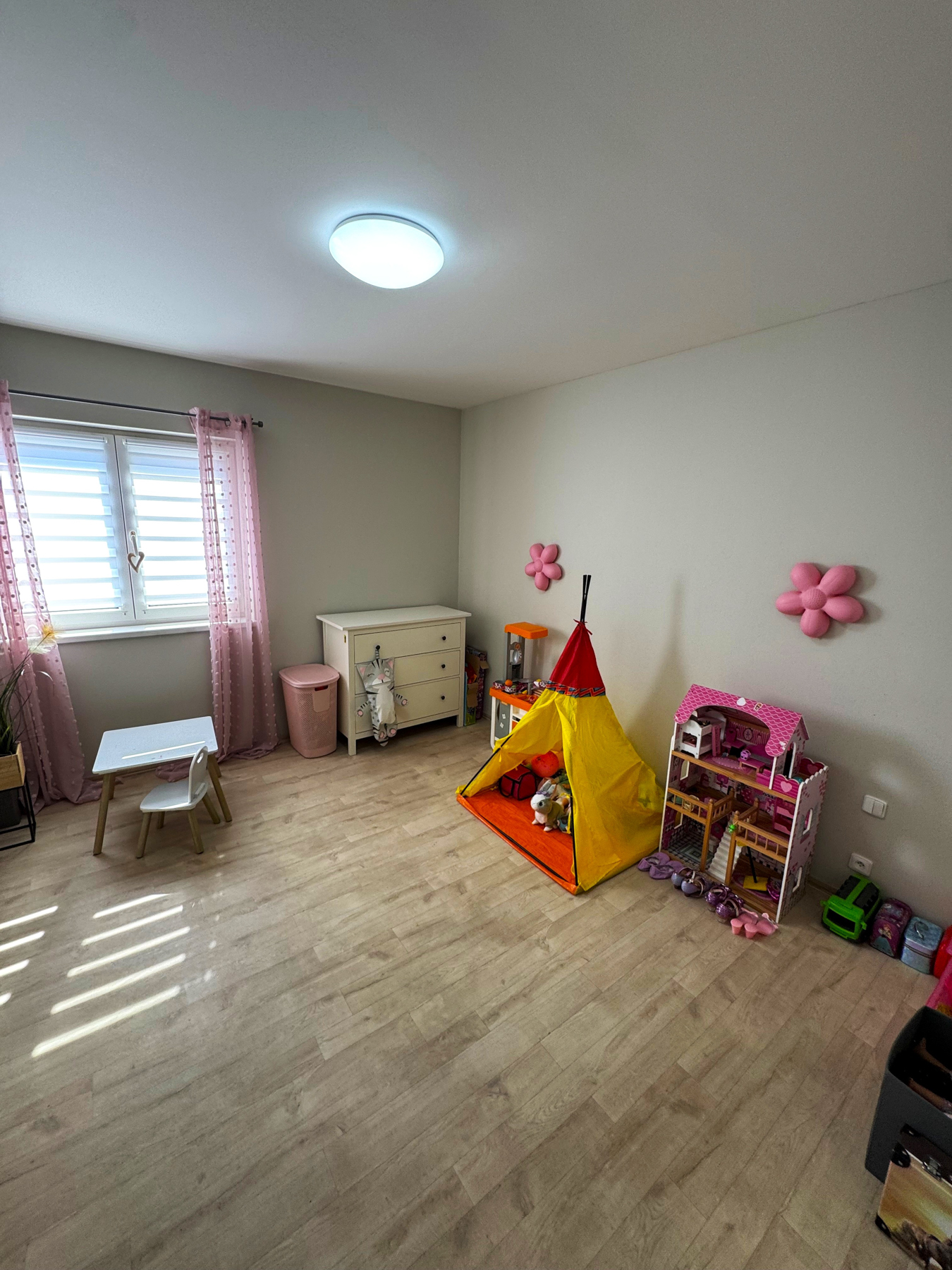 – prostorný obývací pokoj spojený s kuchyní a jídelním koutem, v obývacím pokoji je vestavěný krb, kterým je možné zajistit vytápění spodního patra domu