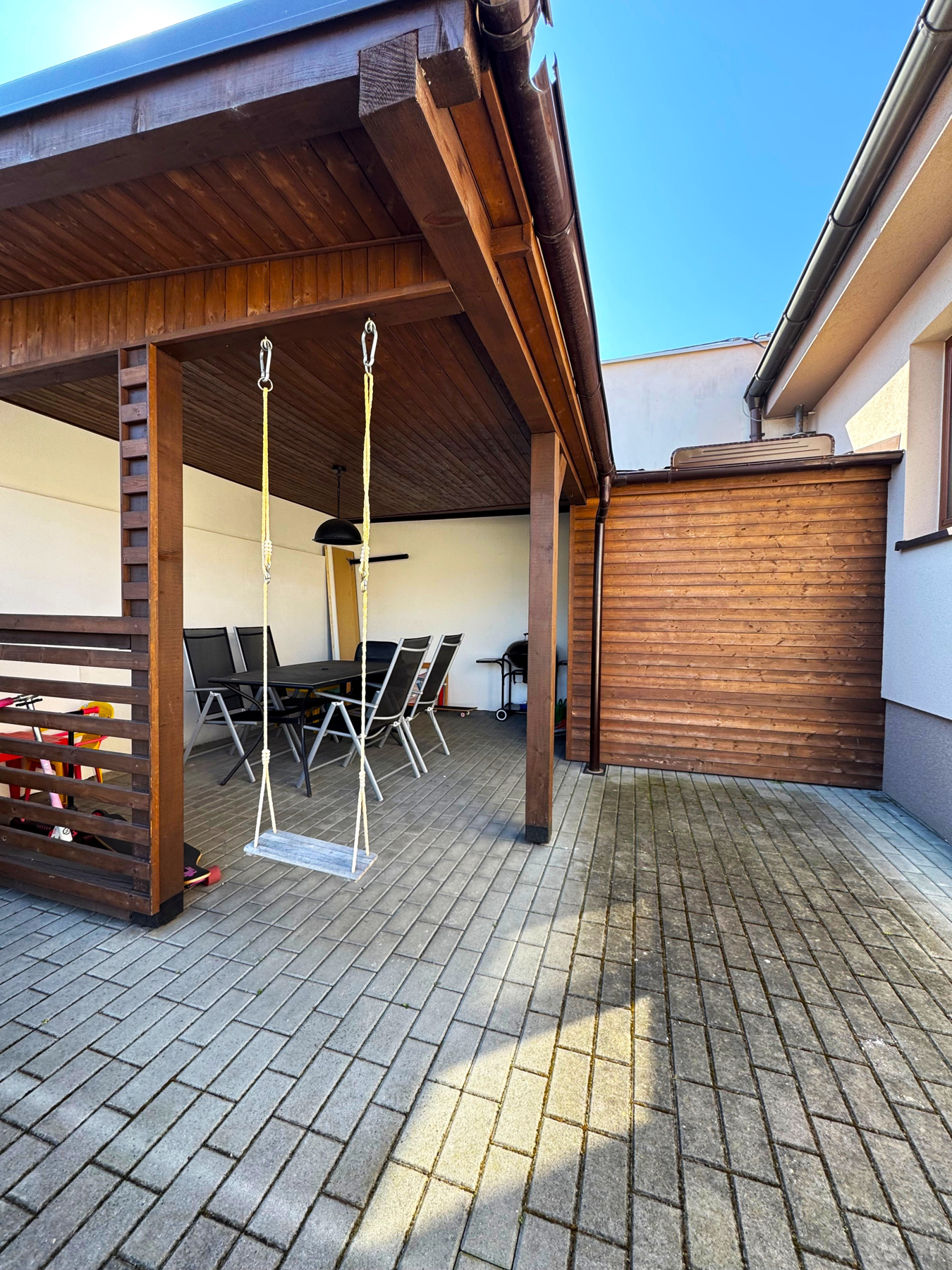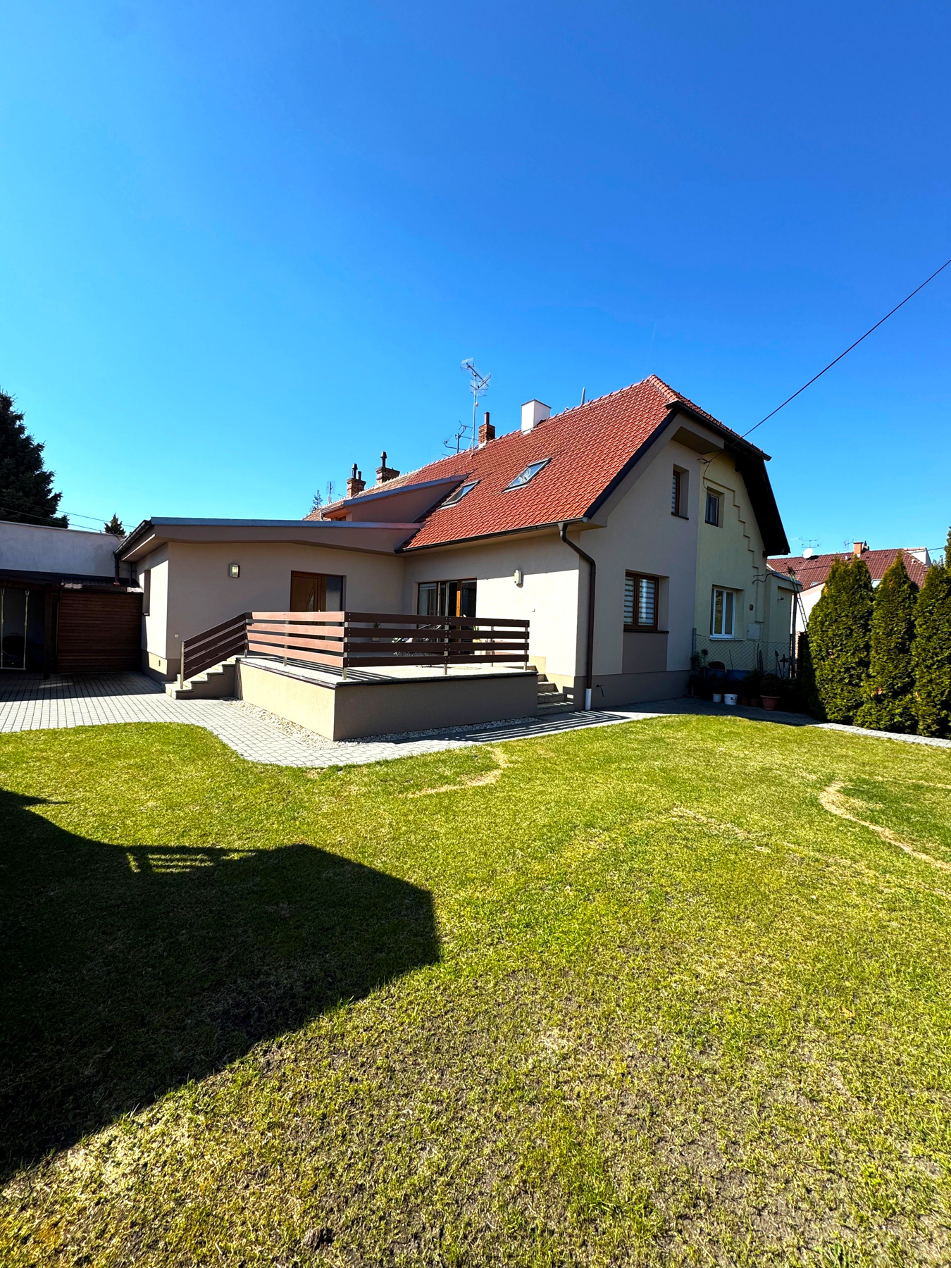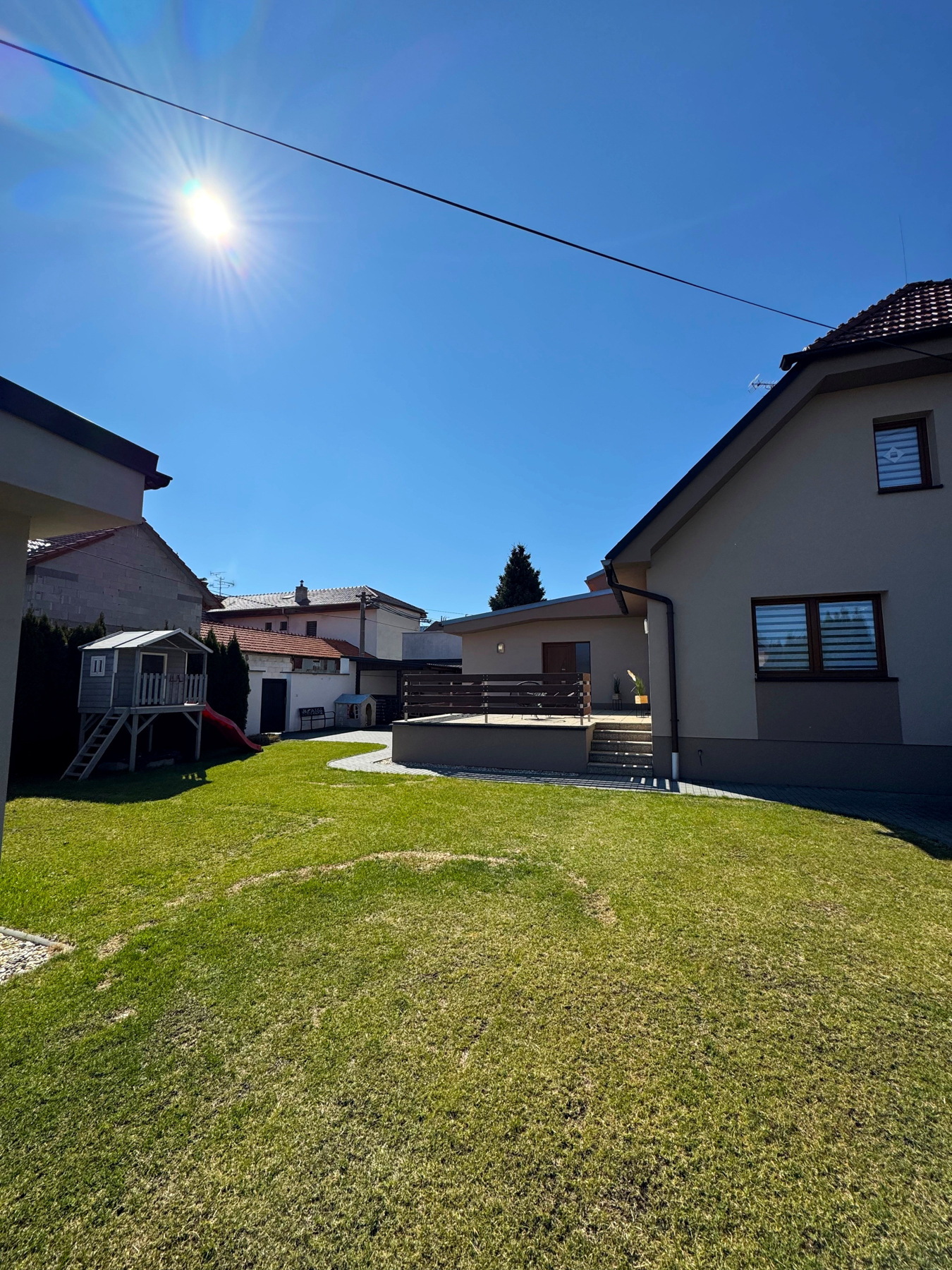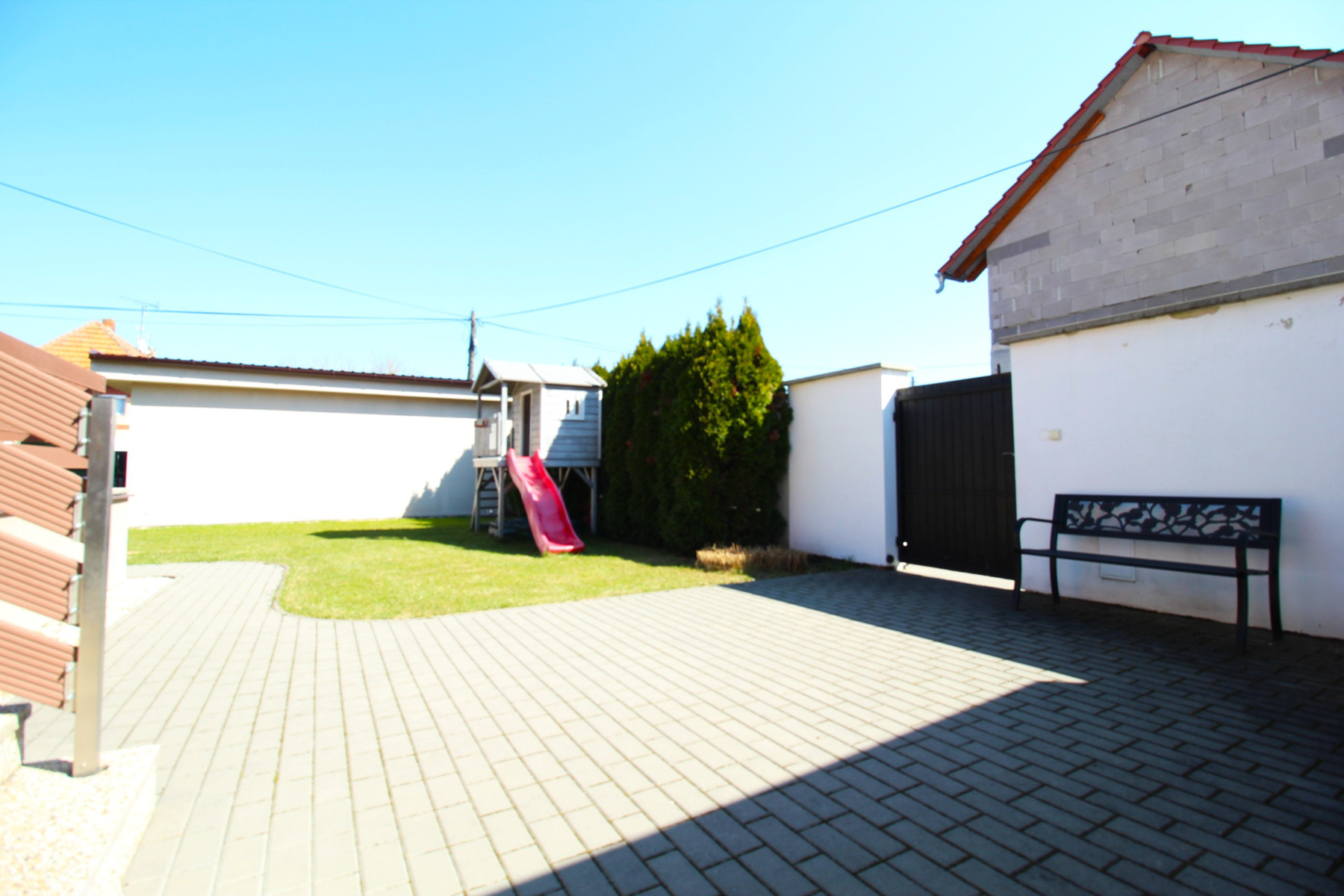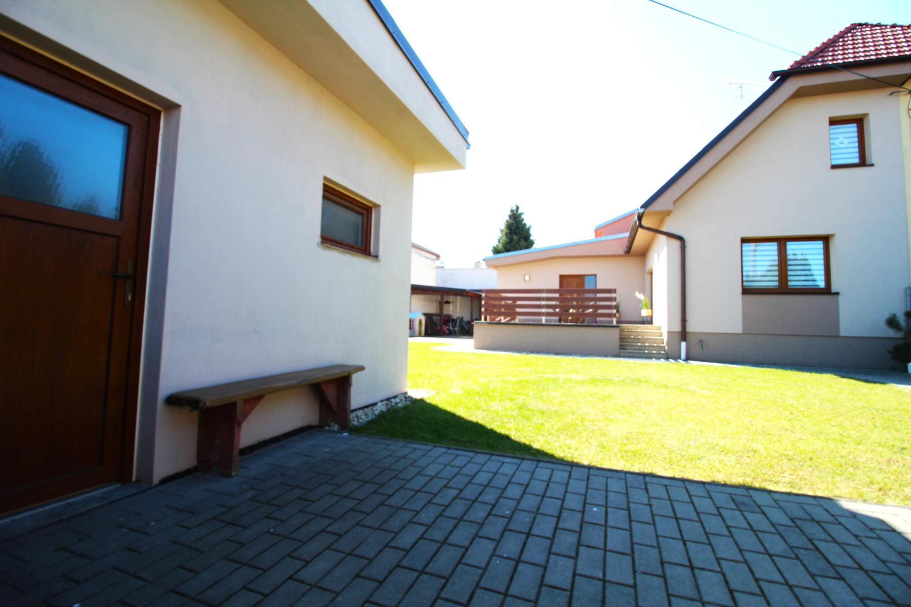 Na pozemku se nachází pergola, udírna, zahradní domek a velká garáž s ložnými prostory, součástí jsou garážová elektrická vrata. Před domem je zajištěno parkování pro více aut. V domě jsou plastová okna a střešní okna zn. Velux. Dům je zateplen 10 cm polystyrénem a šířka obvodových zdí je 50 cm. Stáří střechy je 10 let-pálená taška. Dům je po celé ploše vytápěn podlahovým elektrickým topením, obecní vodovod, kanalizace.