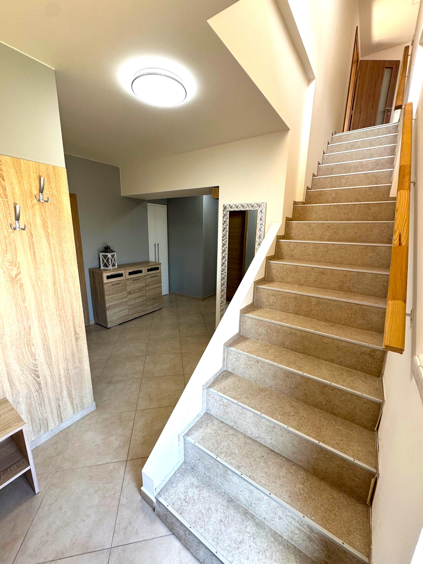 Dům je velmi vkusně zařízen a poskytuje představy o útulném rodinném bydlení.