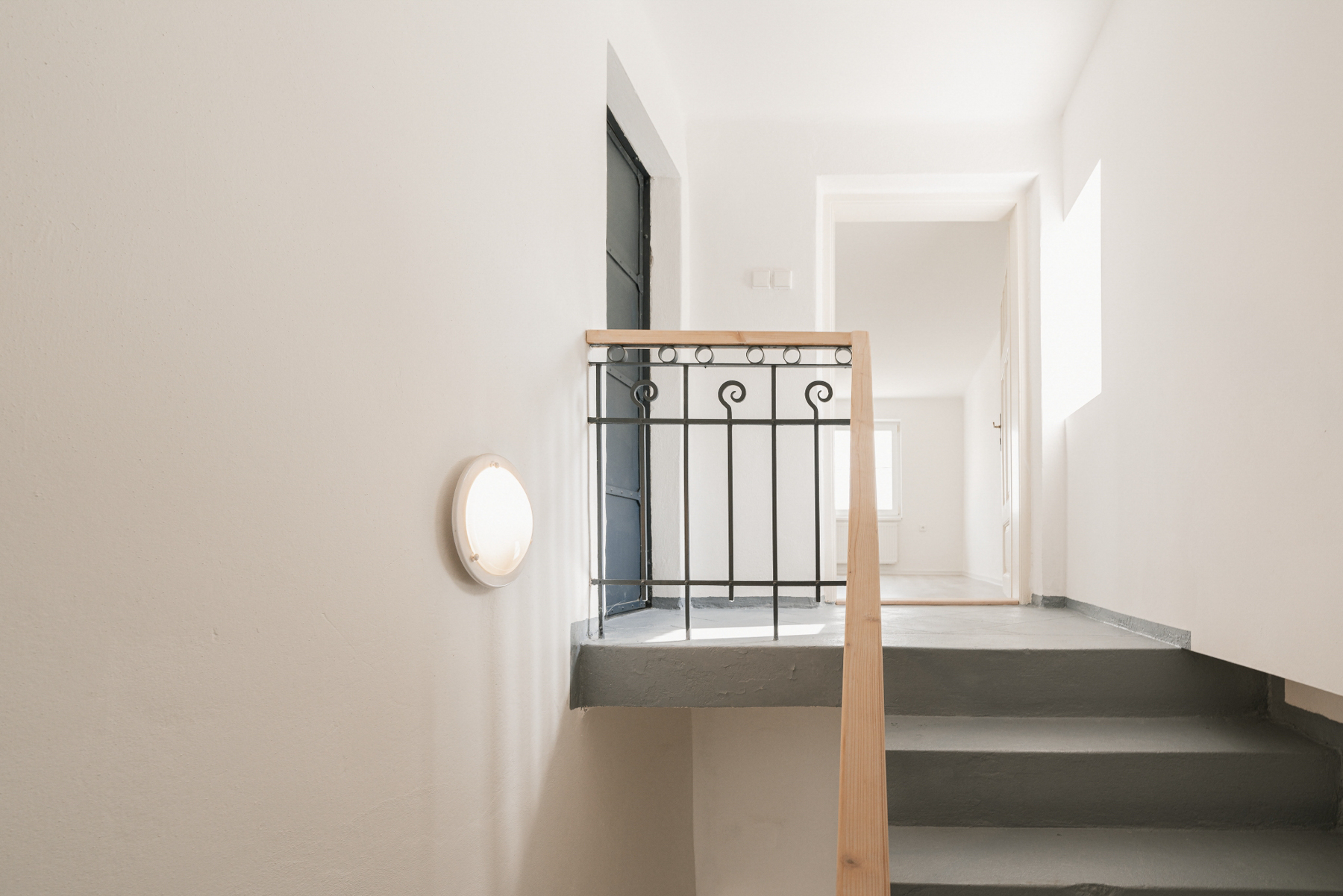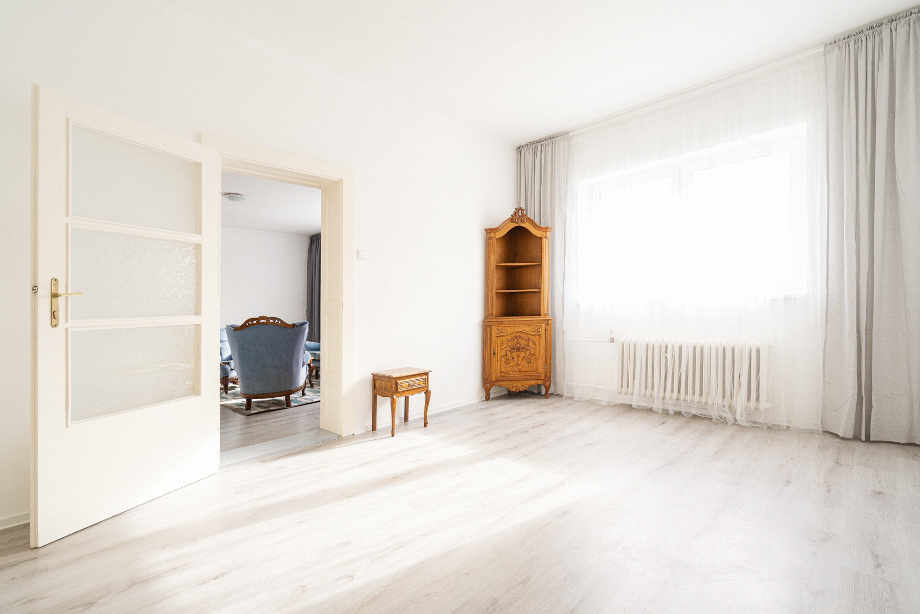 Při rekonstrukci byly použity kvalitní materiály, plastová okna, vinylové podlahy ve stejném designu po celé ploše obytného prostoru.